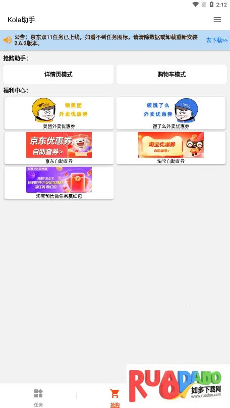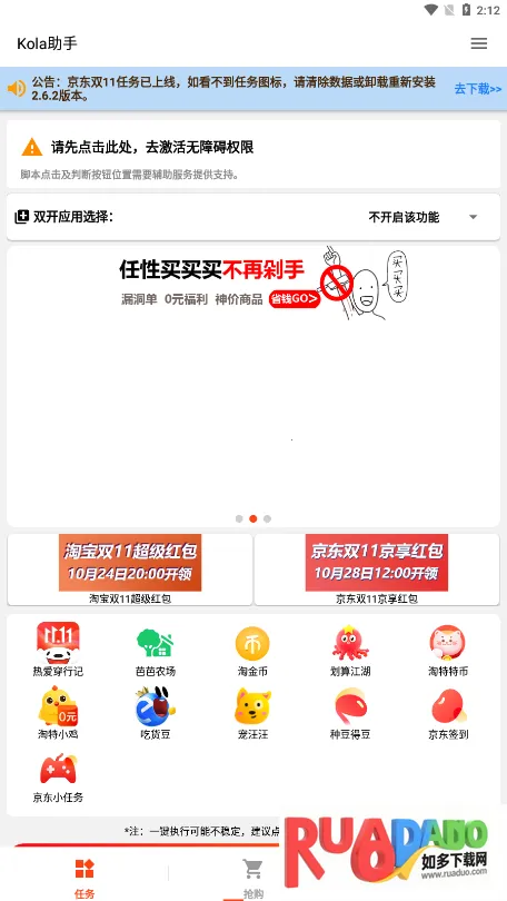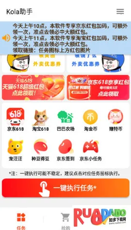 Kola助手安卓版是一款实用的电商购物辅助工具,能全自动完成淘宝京东等平台多种任务。有多种抢购脚本,可自动执行操作,还能整合优惠、自动完成任务、领取红包,无广告干扰,使用便捷,提升购物体验。