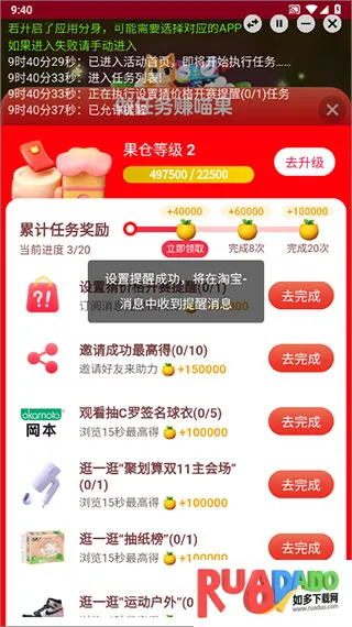 2. 智能提示及时:监控到目标优惠活动临近抢购时间或任务完成时,会发出智能提示,确保用户不错过关键节点。