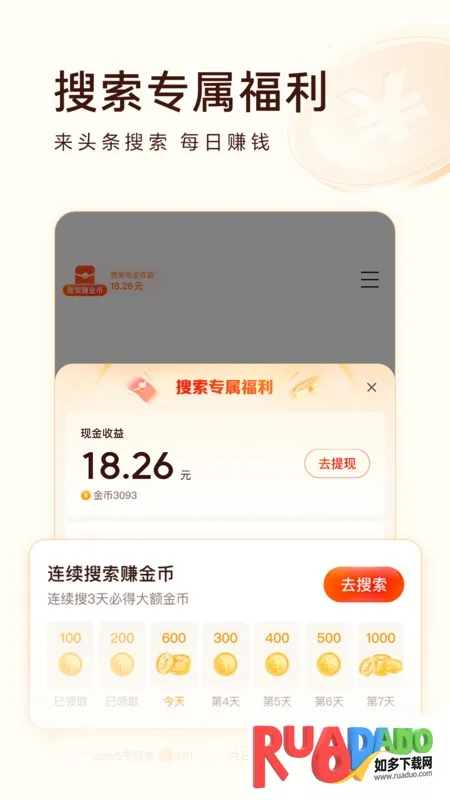 头条搜索极速版是一款热门新闻阅读软件,运行快、界面清爽、省流量。能一键刷新看新闻,依用户喜好自动推荐,可自定义订阅。还有专属微头条、丰富频道、问答区等,看视频能赚钱,邀请好友奖励多。