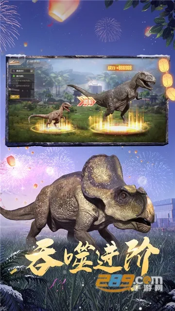 1. 游戏以侏罗纪为背景,玩家能捕捉、改造上百种绝迹恐龙,组建巨兽军团,不同巨兽特性各异,搭配多样。