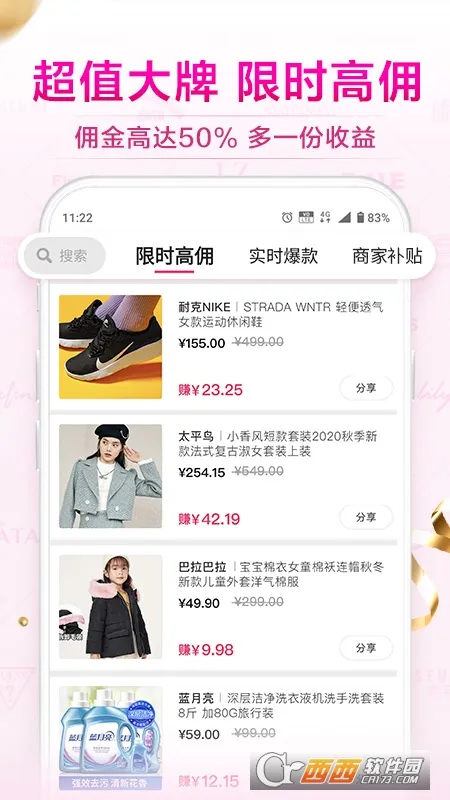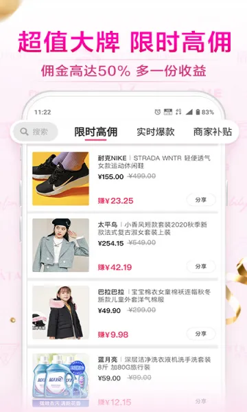 2. 分享赚钱轻松:正品好货一键分享,好友购物即可得佣金,0成本高收入。