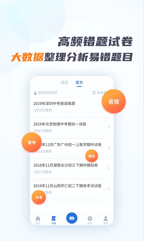 考霸错题本是一款学生错题整理软件,汇聚海量考题试卷,支持拍照搜题、一键制作错题本。能个性化定制,云端储存数据,还有大数据分析生成高频错题试卷,近期更新还上线微课功能 。