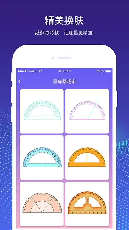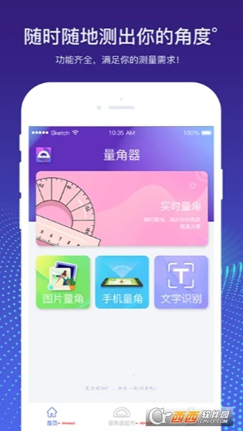 量角器测量仪是多功能测量软件,集实时量角、图片量角、坡度测量等多种功能于一身,还涵盖指南针、尺子、分贝仪等工具。支持智能识别、单位转换,操作简单,界面简洁精准,且能换肤,随时随地满足测量需求 。