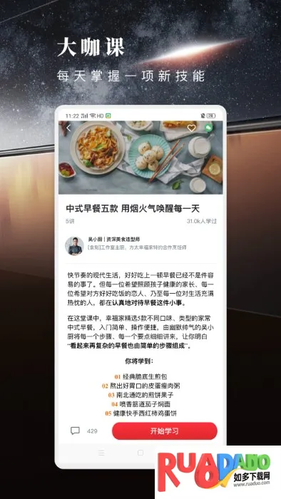2. 它主打健康烹饪,站内有超10000个专业美食菜谱、1100多个厨房攻略和烹饪技巧视频,以及500多个系列名师大厨烹饪课程,无论新手入门还是大厨进阶都能找到适合的教学。