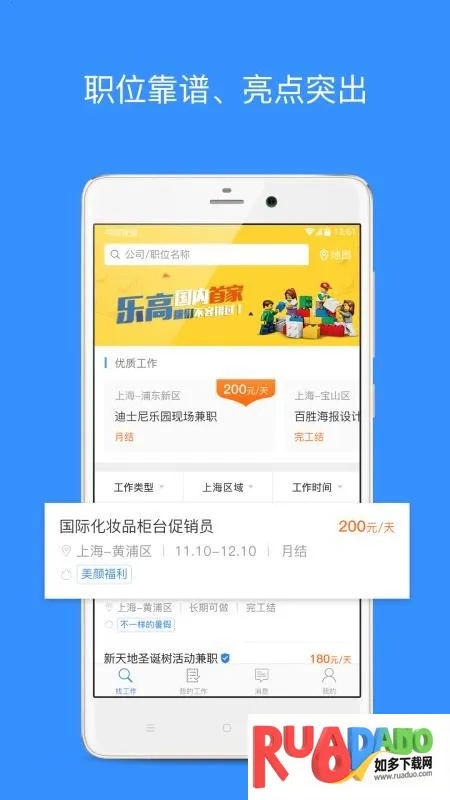 它的功能超实用,能随时在线找工作,通过职位搜索精准定位心仪职位,还能浏览工作详情,直接在线申请。平台会实时更新兼职资源,提供大量高薪兼职,让你灵活就业,高效快捷地找到满意工作。而且团队严格审查入驻企业,保障信息真实可靠,充分维护学生权益。有了乐业天空兼职,找兼职变得轻松又放心,快来试试吧!