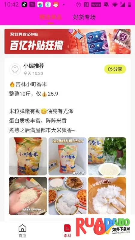 2、有丰富多样商品素材可随心分享,能实时分销产品赚佣金。