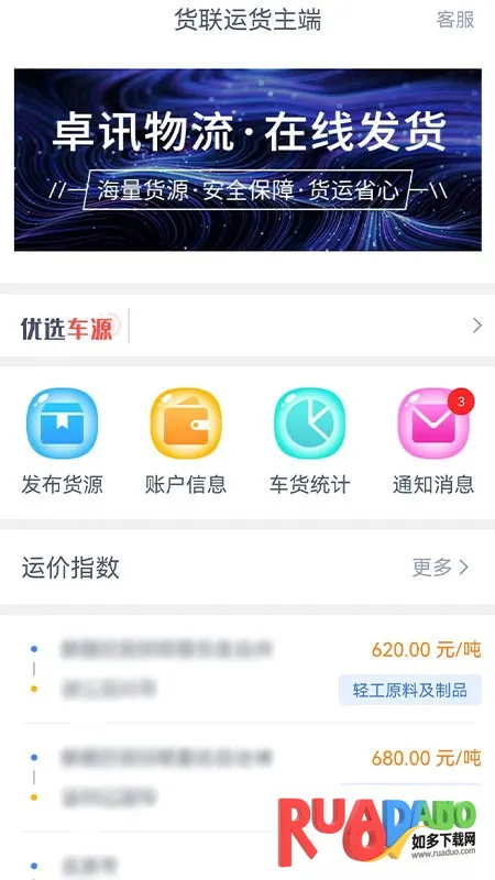 货联运货主端是一款货运服务软件,货主能在线发布货源,平台匹配车辆运输,可查订单动向。还提供多种功能,有专业客服,支持多种支付,能定制方案,实现高效运输与便捷配送。