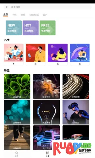 1. 拥有海量资源,涵盖主题、壁纸、字体、铃声等,满足多样需求。