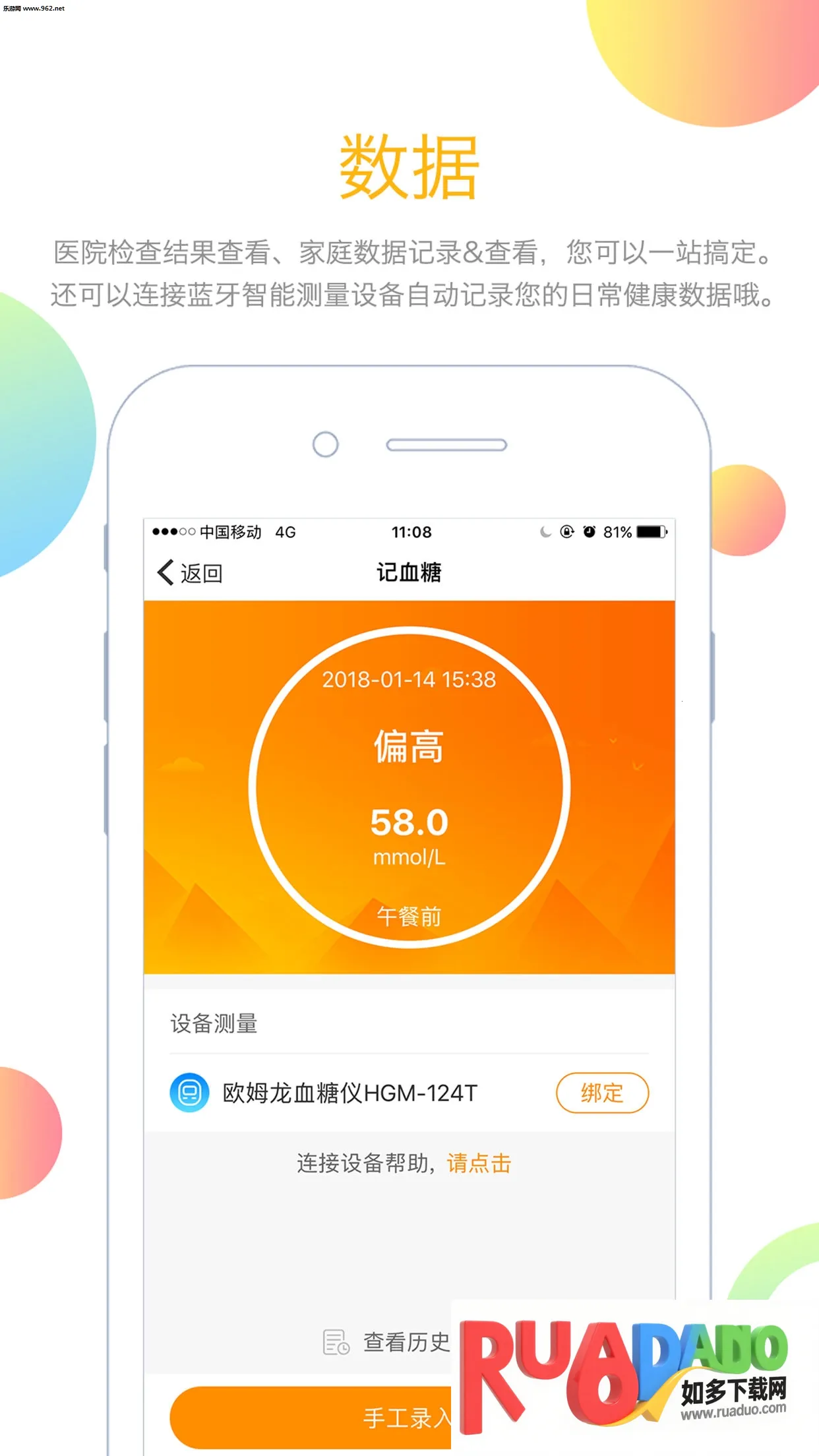 4. 一站搞定医院检查结果查看和家庭数据记录查看,还能连蓝牙智能测量设备自动记录日常健康数据。