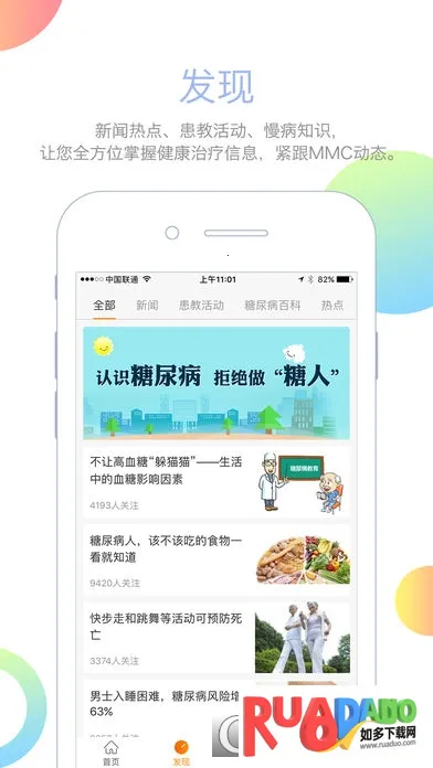 4、连接蓝牙智能设备自动记录日常健康数据,便利性提升到新高度,MMC动态版块提供丰富健康资讯。