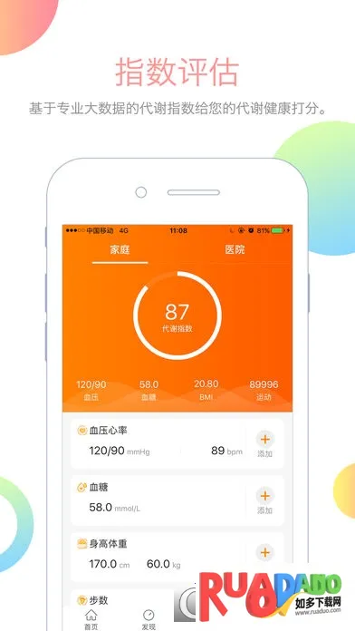 3、指数评估功能通过专业大数据分析,为代谢健康提供全面评分,助用户清晰认识自身健康。