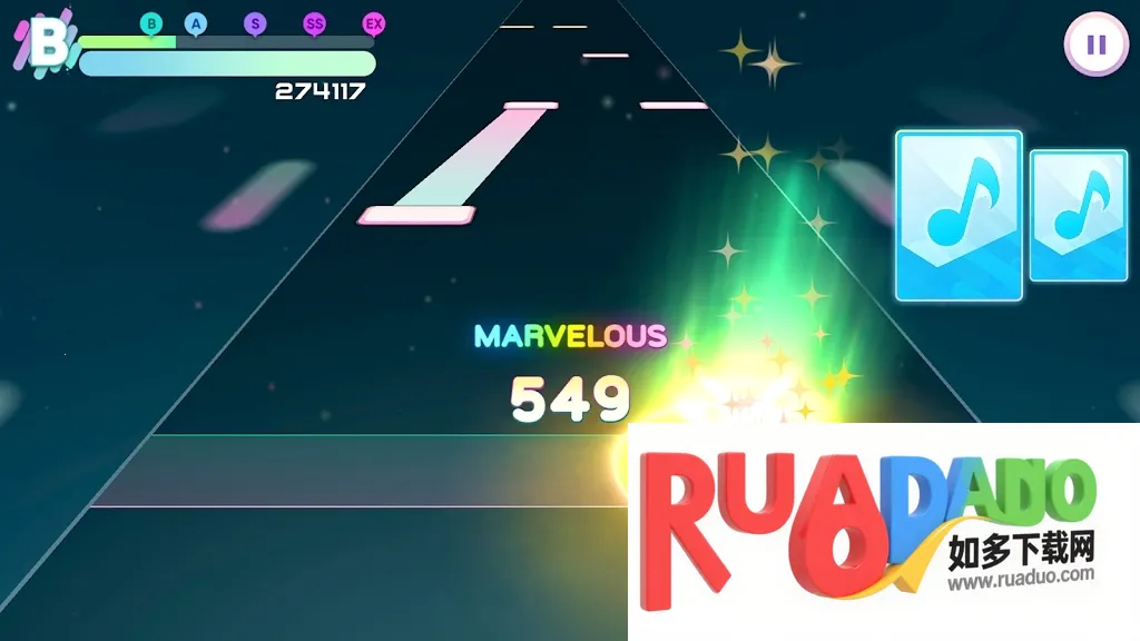 2. 操作简单,跟随音乐节奏点击或长按屏幕音符就能完成演奏。