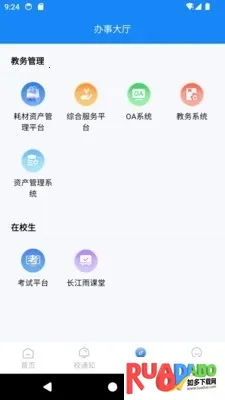 4. 首页同步学院官网全量资讯,办事大厅聚合各类服务,还有特色功能模块,满足多样需求。