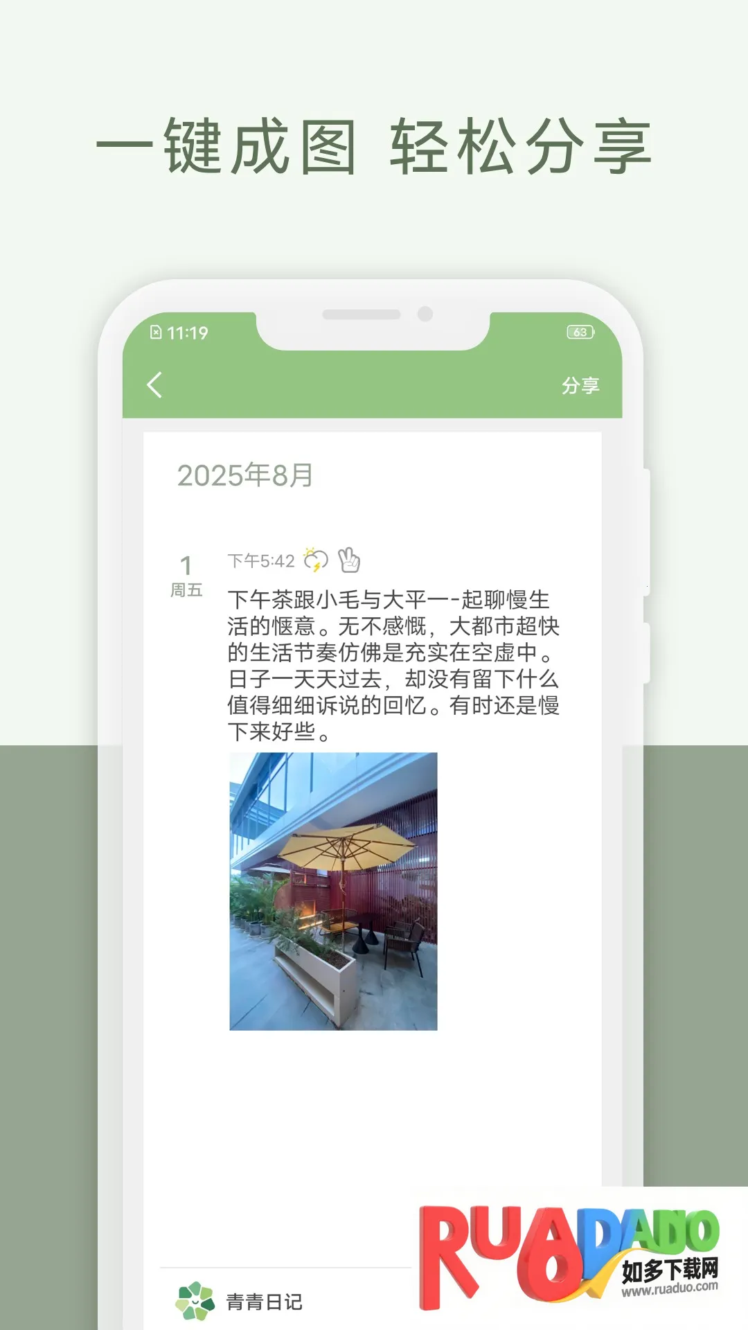 1. 青青日记界面简约清新,没有繁杂元素干扰,能营造沉浸式使用感受。