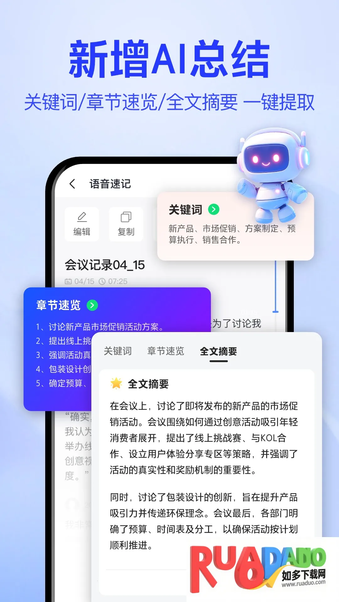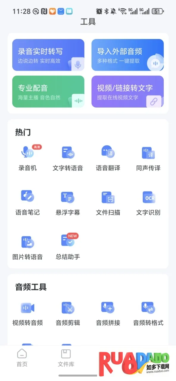 4. 支持视频转文字、文字转语音、外部录音转文字、语音速记、录音转文字、专业录音机、语音翻译等多种功能。