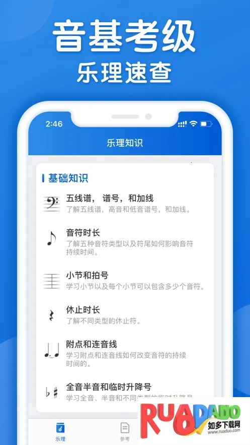 4. 有乐理题库、乐理参考等功能,能专项练习、轻松查找知识,提高学习效率。