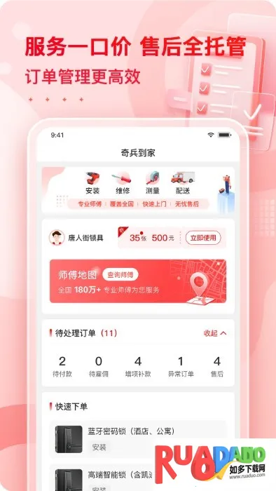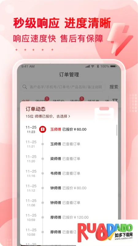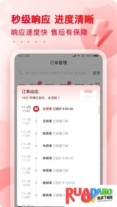 1. 极速响应机制,智能派单系统实时匹配,紧急需求10分钟内师傅联系用户并上门。