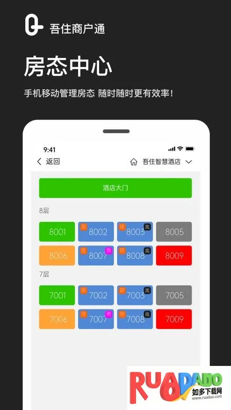 4. 实时监测酒店房间状态,房态清晰一目了然。