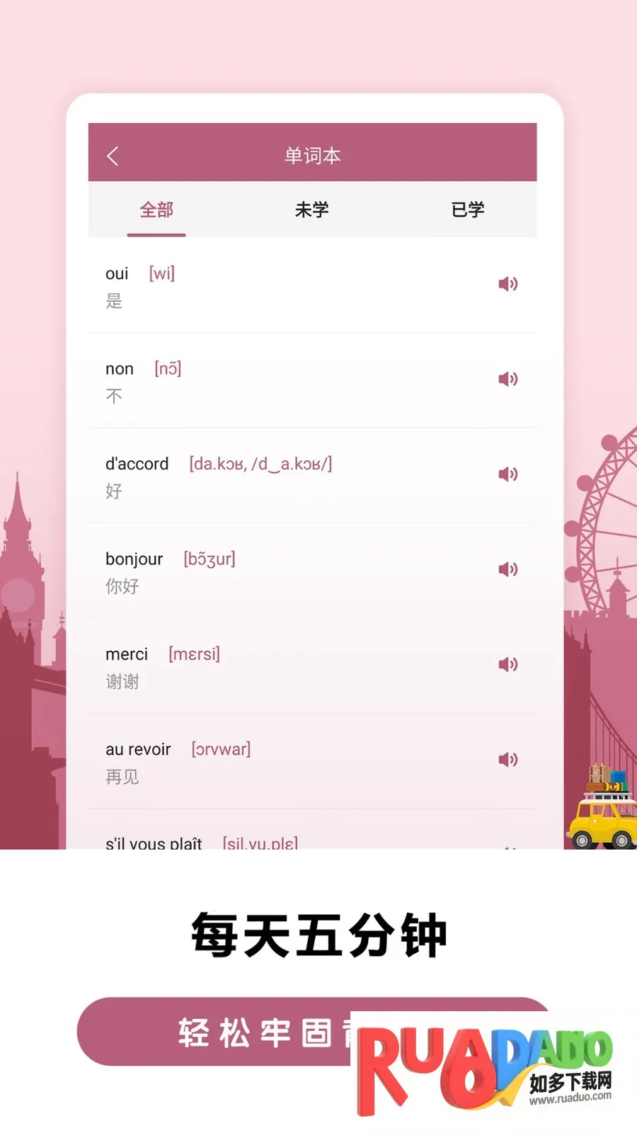 莱特法语学习背单词是一款针对法语词汇学习的移动应用。运用艾宾浩斯记忆曲线,提供系统内容与多题型练习,涵盖多种词库,支持离线使用,有丰富功能与特色,满足不同阶段法语学习者词汇巩固需求。