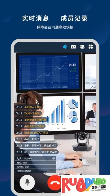 3. 成员在线可实时消息互动,随时记录会议内容,保障沟通高效快捷。