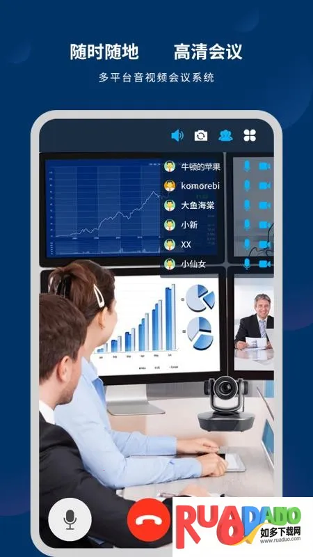 2. 多平台音视频会议系统,支持手机、电脑、网页、HD 端等。
