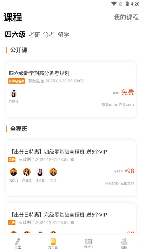 4. 有独家配套微课程,英语四级名师独家解析,四级考试出题老师预测考试趋势。