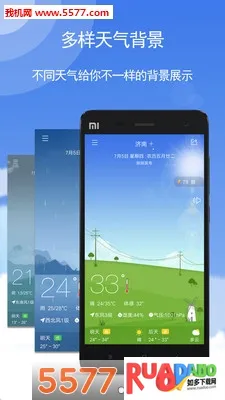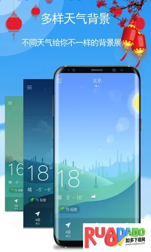 3. 提供多种不同大小、内容的桌面插件,自动更新,实时天气在手机桌面即可查看。