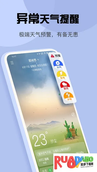 4. 提供16种突发气象灾害预警信号,如台风、暴雨、暴雪、大雾霾等,以及全球地震预警,预警信息附带防御指南,帮助用户提前规避天气风险,保障出行安全。
