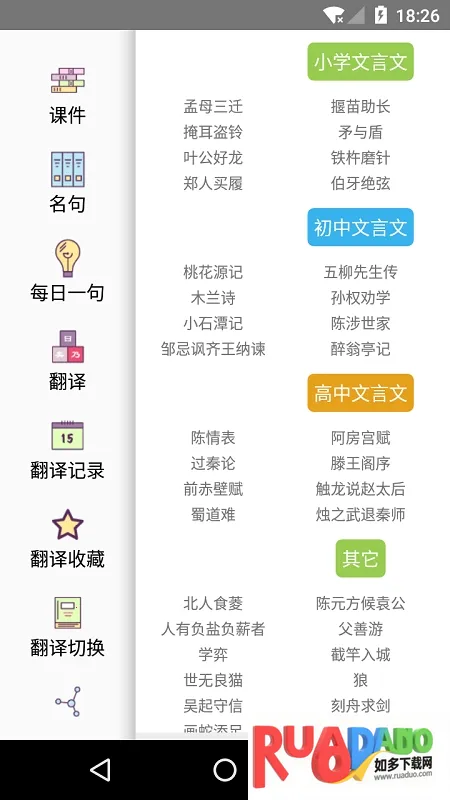 1. 提供小学初中高中及其他分类的文言文资源,方便学习。