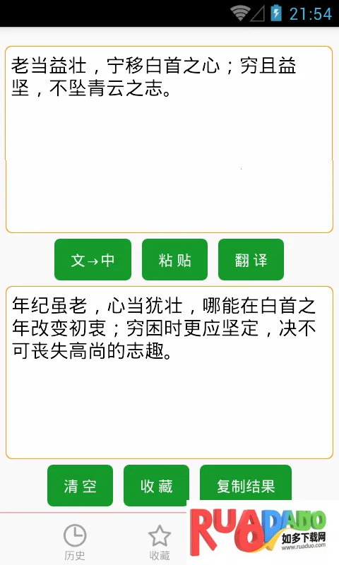 学文言文是不是总觉得困难重重?别担心,咱有超棒的文言文翻译工具来帮忙!它功能超强大,能把文言文快速准确地翻译成白话文,也能把白话文译成文言文。操作简单得很,在输入框输入古文,瞬间就能出现相关句子和解释,还能智能逐字逐词翻译。不管是阅读古文、考古学习,还是研究文言文,它都能派上大用场,帮你轻松理解古文意思。而且涵盖了初高中所有文言文内容,有注释、翻译和赏析,随手就能查阅。还有诗词日历功能,配上精美配图和适宜诗句,尽显古风之美。更贴心的是,它无需网络就能用,自动保存翻译记录,方便复习查看。有了它,学习文言文再也不发愁,赶紧试试吧!