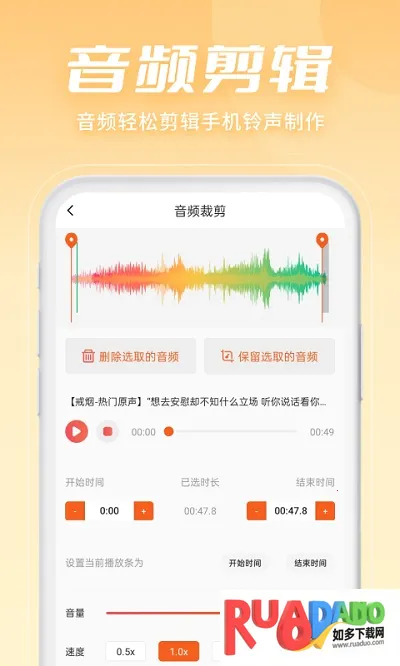 2. 具备毫秒级精度剪辑,可进行裁剪、合并、淡入淡出等操作,还能提取短视频背景音乐。
