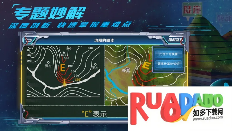 1. 融入AR技术,通过360观察,全方位理解7大重难点知识主题,如等高线地形图等,一看就懂。