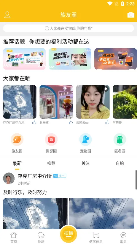 4. 同城交友活跃,族友圈能相互分享交流,还为用户提供全面消费经验分享 。