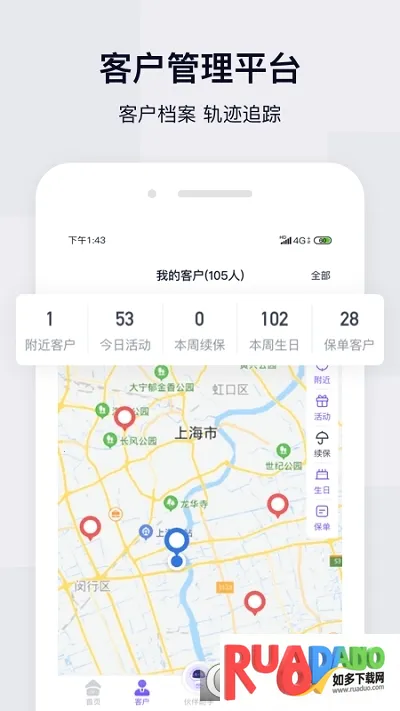 1. 蛮牛伙伴能切换不同客户标签,查看客户参与活动、生日及保单等情况,还可追踪活动轨迹,在地图中查看客户在不同门店的历史记录。
