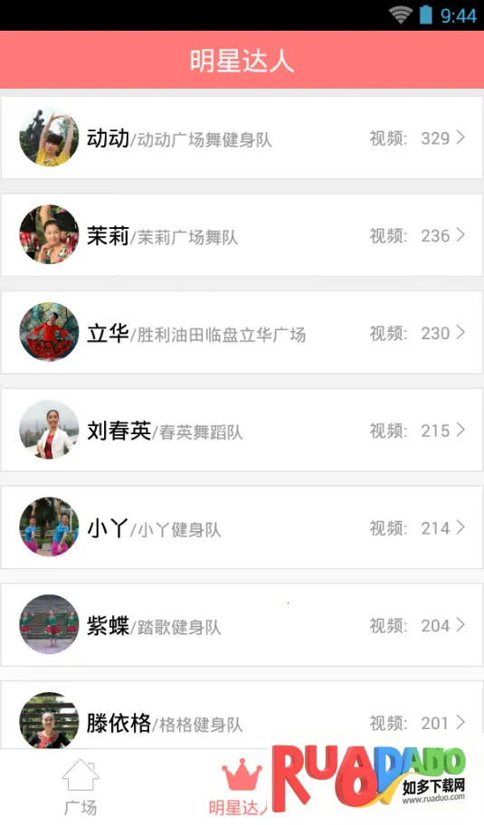 8. 网罗明星舞队优质视频,实时更新达人最新广场舞。