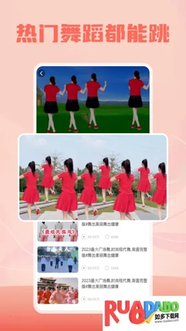 1. 跳跳广场舞软件内包含众多广场舞教学内容,能帮助用户走出家门锻炼。