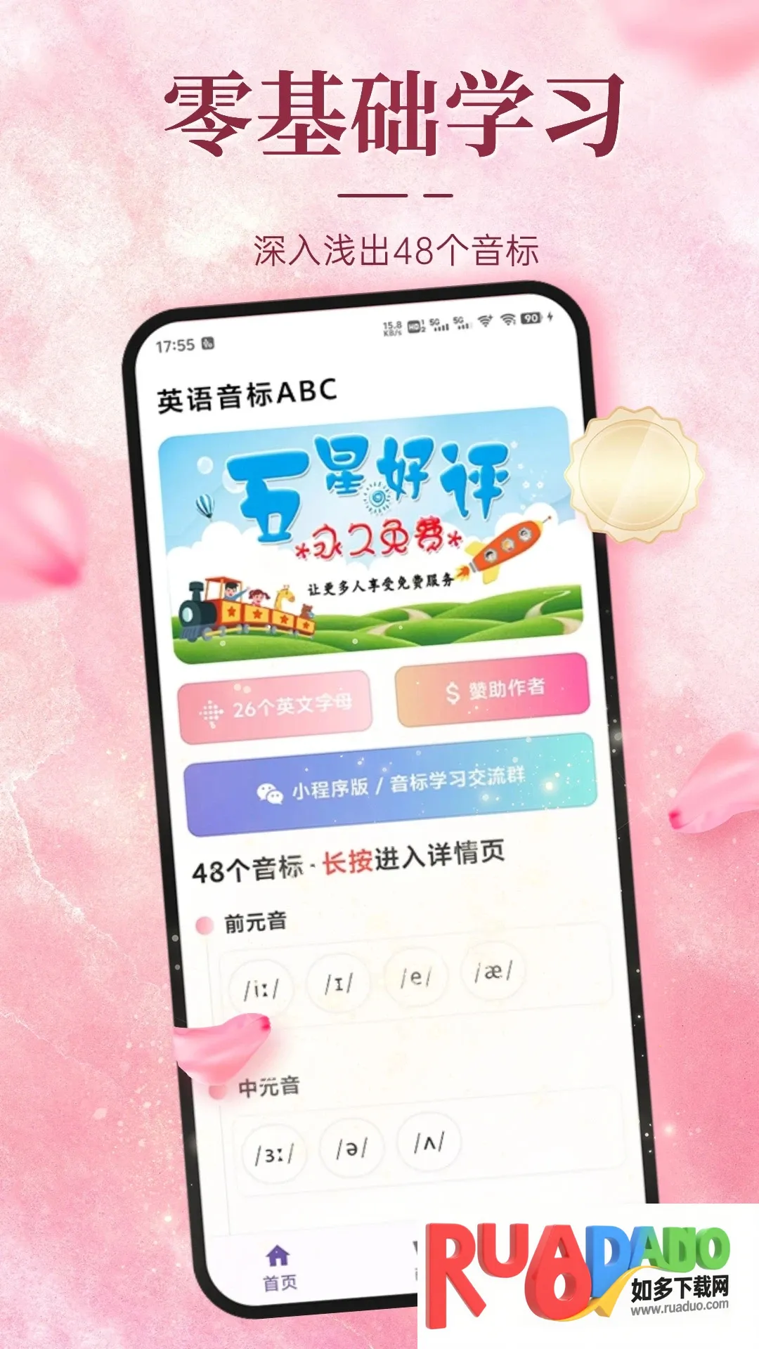 英语音标ABC是专为8岁以下儿童打造的英语早教软件。提供专业字母发音、音标学习,有字母及单词拼图等功能,还有可爱动画、字母歌。具备多种教学方法,界面简洁,免费且能辅助完成音标学习,提升发音水平。