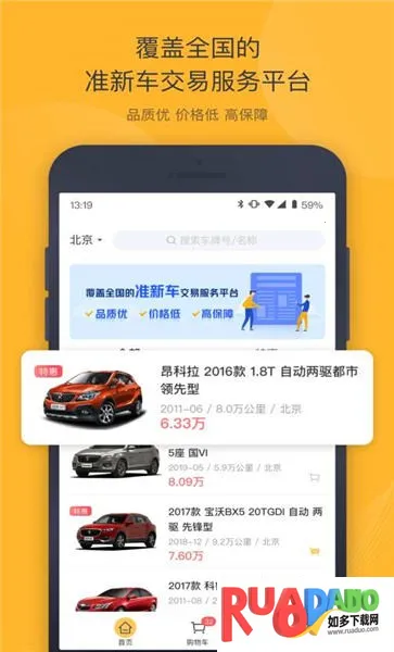 1. 覆盖全国的二手车自产自销平台,全国300车型,30库存城市,零售寄售批发特卖多种业务类型。