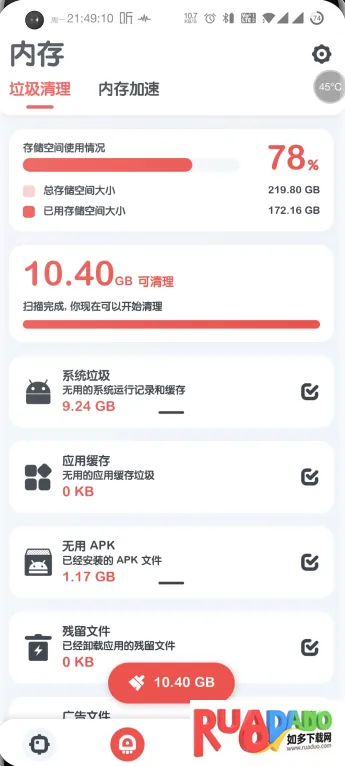 1. 能全面扫描手机后台应用,让用户直观感受后台状态。