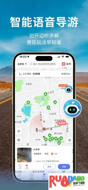3. 智能语音导游相伴,图文并茂介绍路线景点。