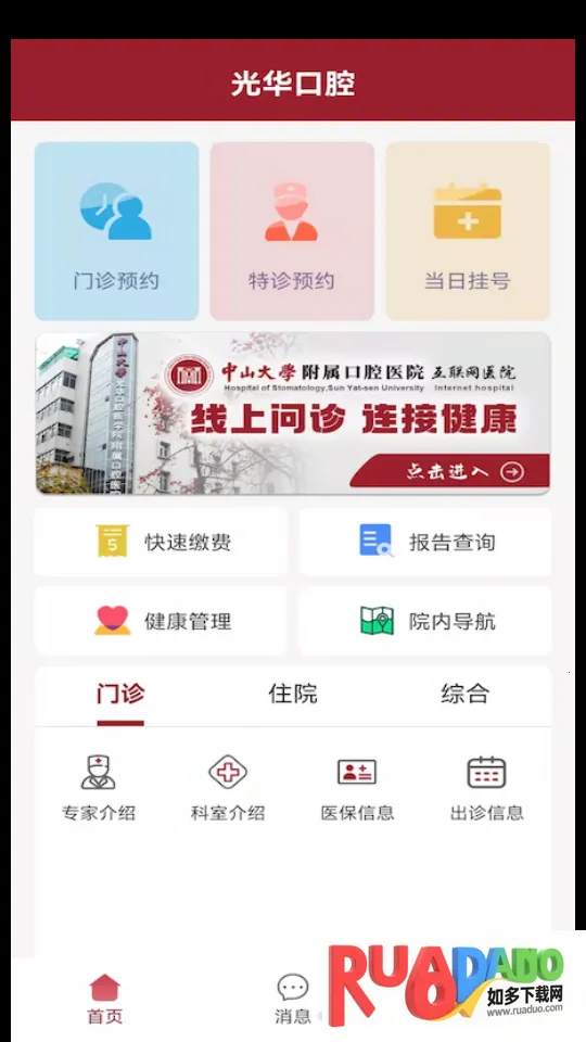 中大光华口腔是专为中大学生设计的APP,提供口腔保健服务。有预约挂号、咨询医生、查找诊所等功能,能获取保健知识与科研成果,参与线下活动,还可在移动端处理多项就医事务,方便快捷,满足需求。