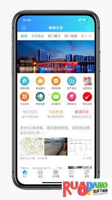简阳生活app专为简阳居民打造,提供新闻、房产、美食、招聘等多样本地服务,还有同城交友、停车查询功能。支持图文分享、智能推送,能划分生活服务类别,几步操作就能添加好友互动,方便实用。