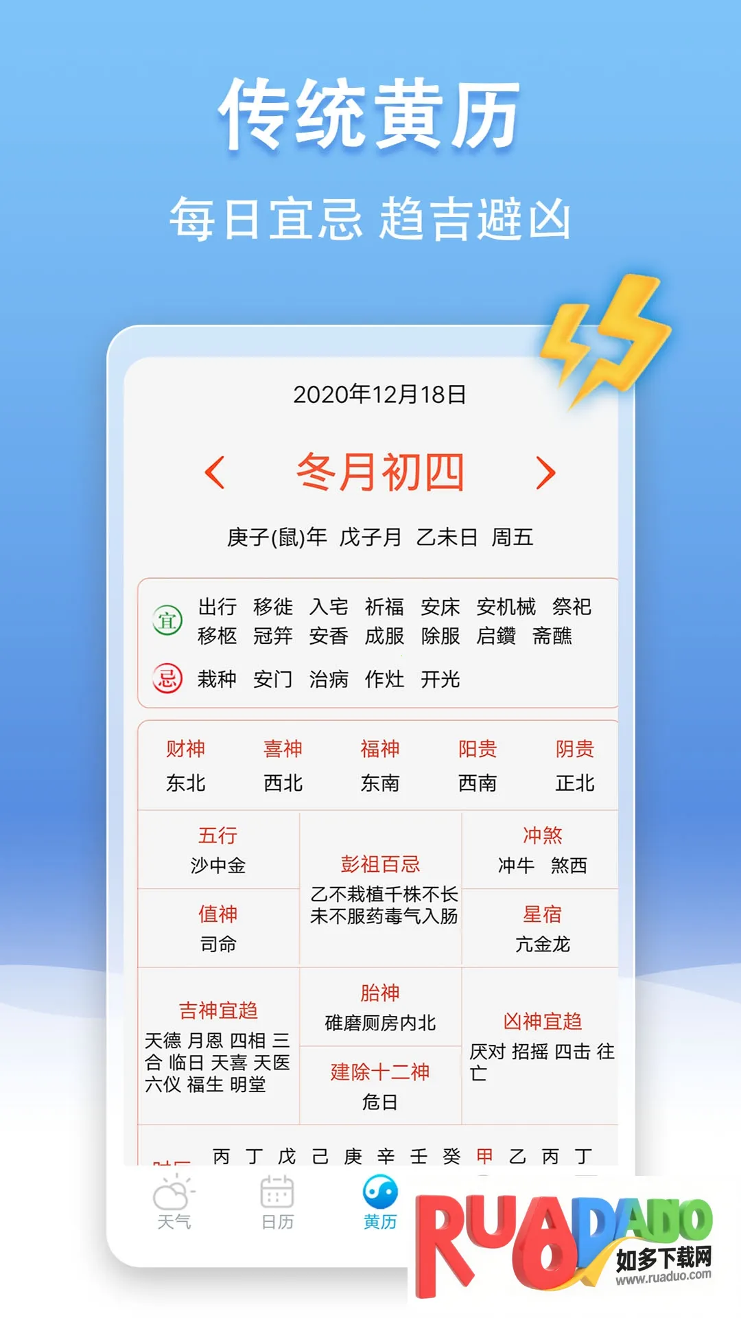 3. 有传统黄历供参考,天气异常时会及时发出预警信息。