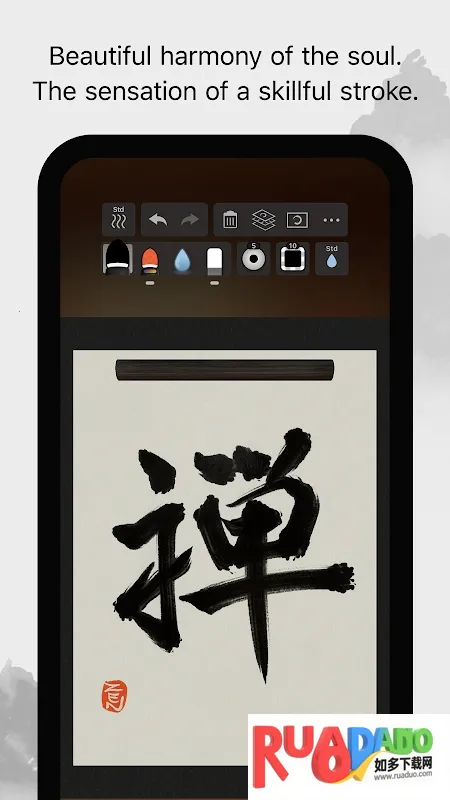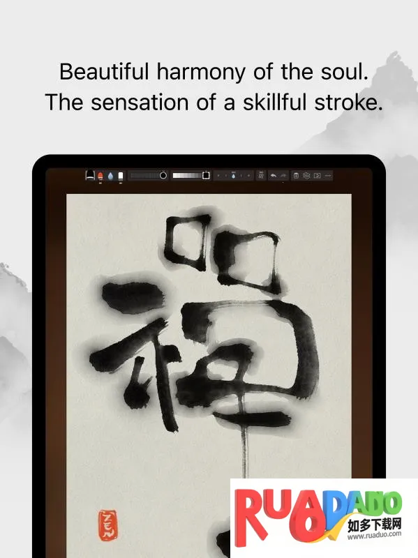 1. 提供五种主要绘画工具,还有多种粗细笔刷、沾水笔刷及墨色选择,满足不同绘画风格。