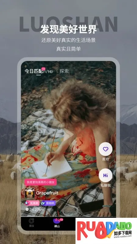 裸山是探索自然美景的App,汇集社交玩法,能产生约会机会。它将社交与生活融合,有丰富社交模式,可找到人生幸福,还有脑洞短视频,助优秀的人相互成长,提供多样交友选择。