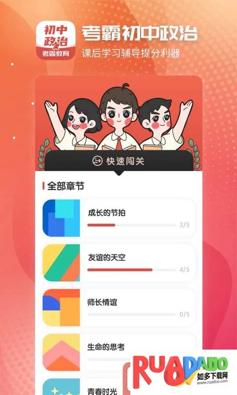 如果你正在为初中政治历史答题发愁,那这款软件绝对能帮到你!它就像一个贴心的学习小助手,涵盖了中考政治科目下所有知识点详解,像心理、道德、法律基础知识、国情部分等大模块都有。这里有全国大部分省市几百套中考真题,还有详细解析,让你清楚每道题的解题思路。专题练习题目也细化涵盖中考政治科目,每道题都有讲解分析。更棒的是,有名师总结习题闯关模式,每天坚持 10 分钟,中考知识点不再头疼。它能帮你科学分类模块速效学习,精选习题、易错本、笔记本、自学视频四大模块分类清晰,让你刷题事半功倍。而且界面设置超贴心,不管你是在被窝里、地铁上还是吃饭时,都能随时刷题,轻松应对初中政治历史答题,助力中考提分!