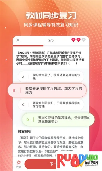 2. 与课本同步知识点学习,可课前预习、课后复习,实现全方位有效学习,让学习更有趣。