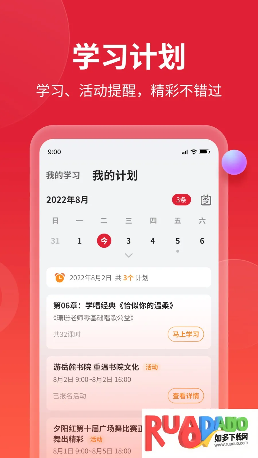 2. 可根据用户内容和需求制定适合的学习计划,便于完成课程。