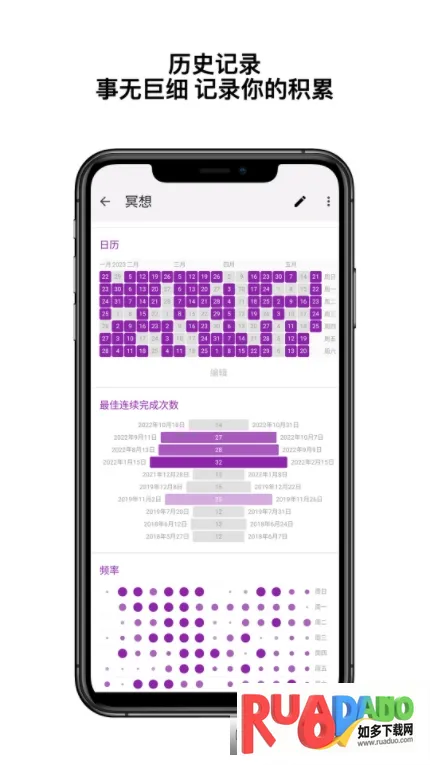 2. 拥有详细图表和统计数据,清晰展现习惯养成全过程,助您直观了解进展。