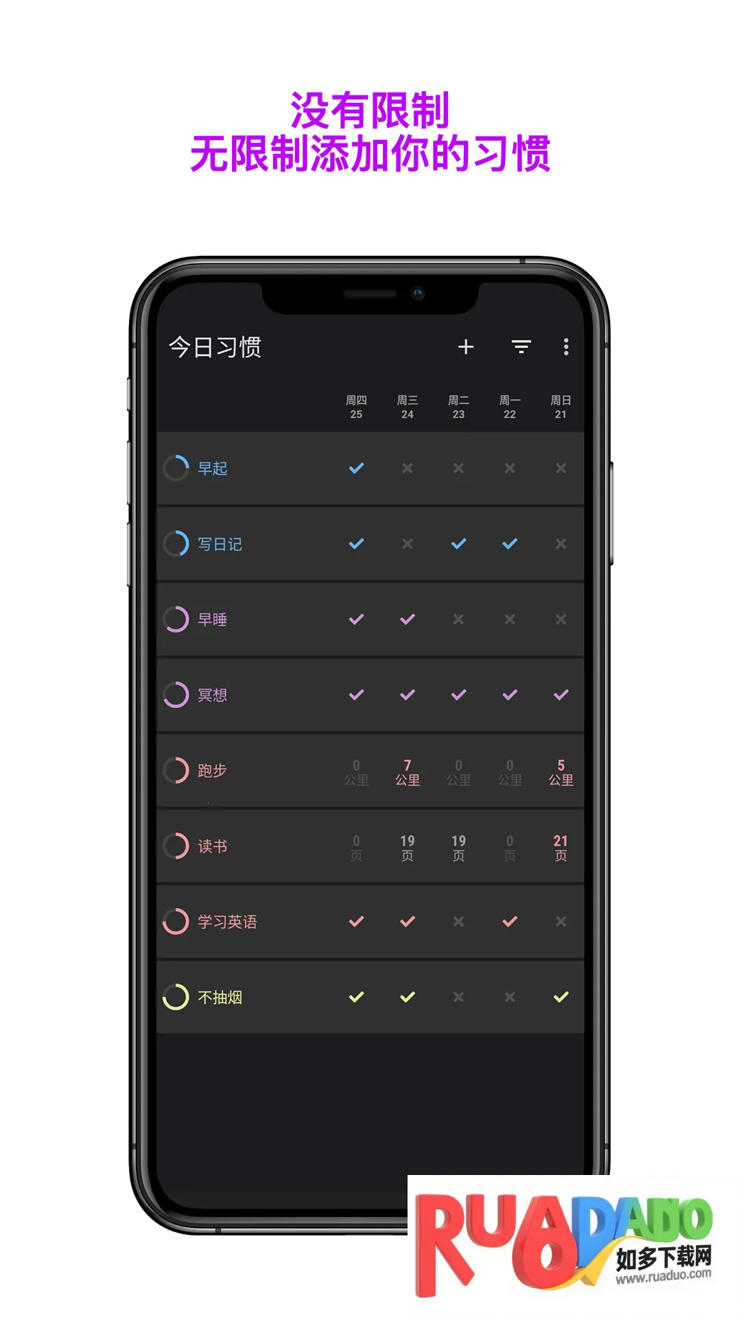 1. 支持多种习惯养成,涵盖日常与复杂作息,从简单到多样,满足不同需求。